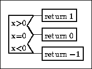 switch{ case x>0: return 1 case x=0: return 0 case x<0: return -1 }