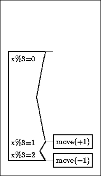 switch{ case x%3=0: case x%3=1: move(+1) case x%3=2: move(-1) }