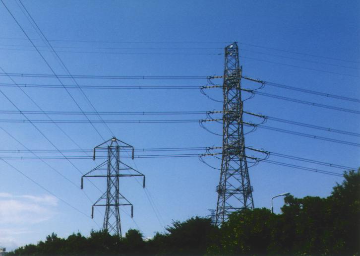 66 号基から 72 号基まではジャミラ型の鉄塔の連続, 左端の鉄塔は西北線 16 号基