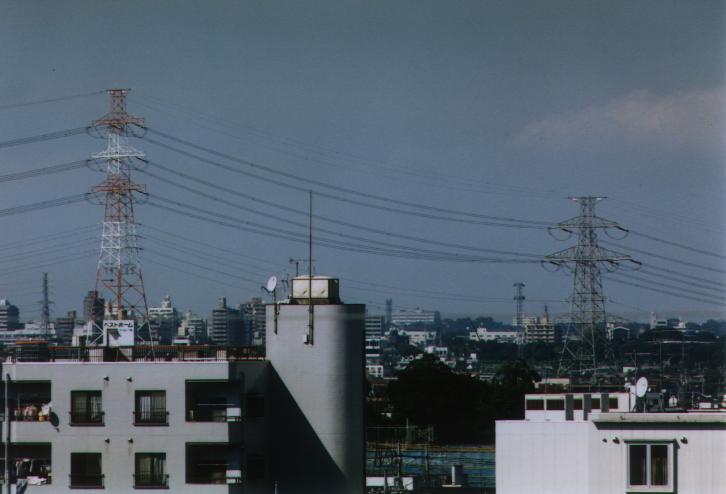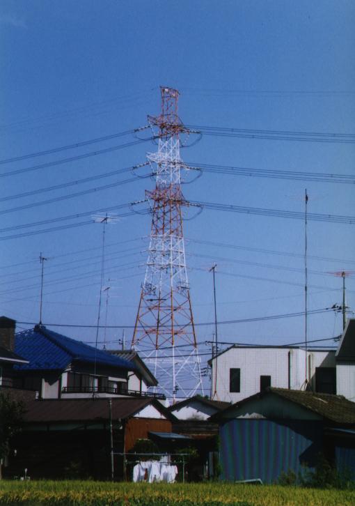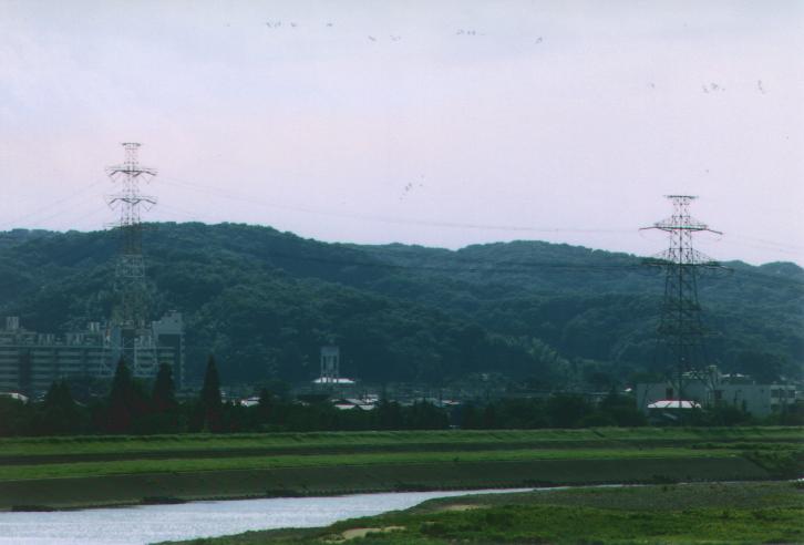 25, 26 号基は 4 回線の鉄塔, 26 号基の先に多摩川がある.