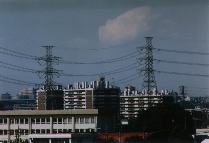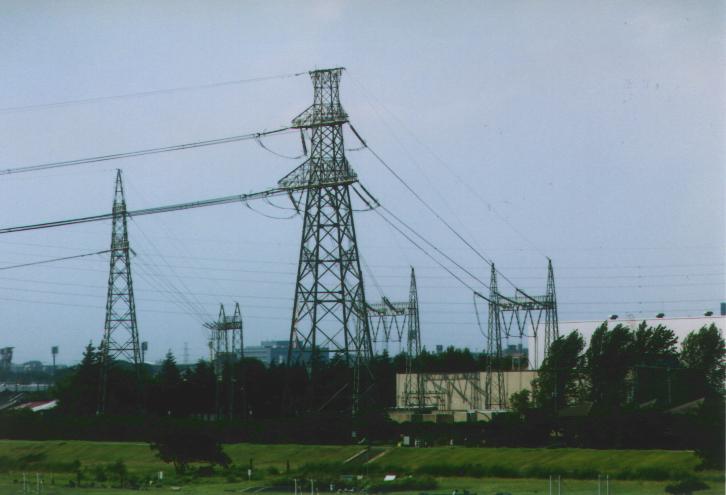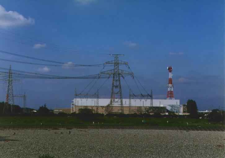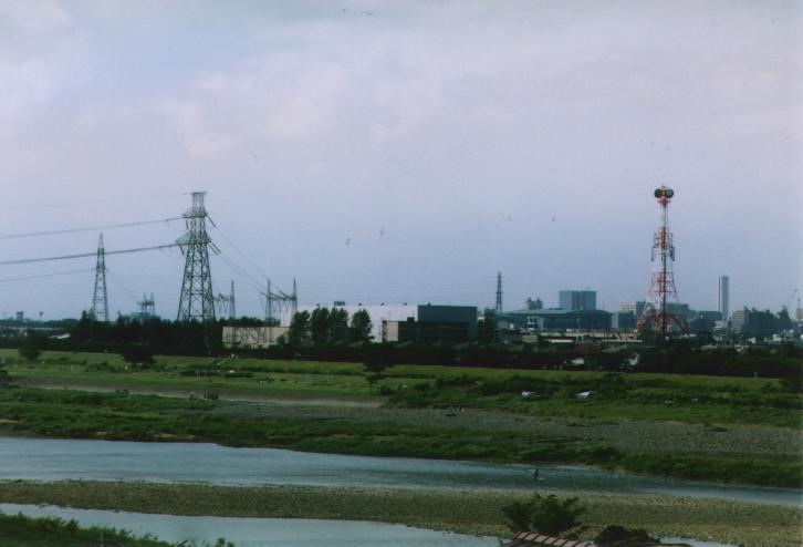西北線最終 27? 号基と北多摩変電所を多摩川から望む