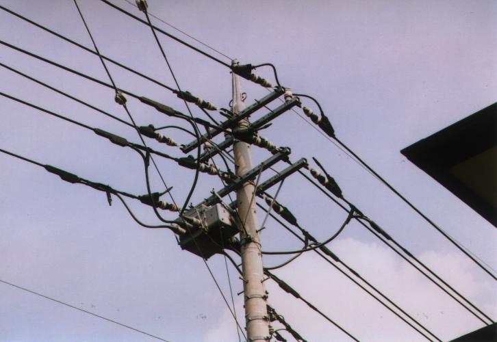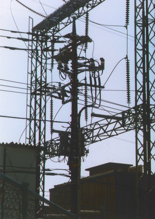 このすぐ左側 (変電所側) の電柱は下の写真のように、